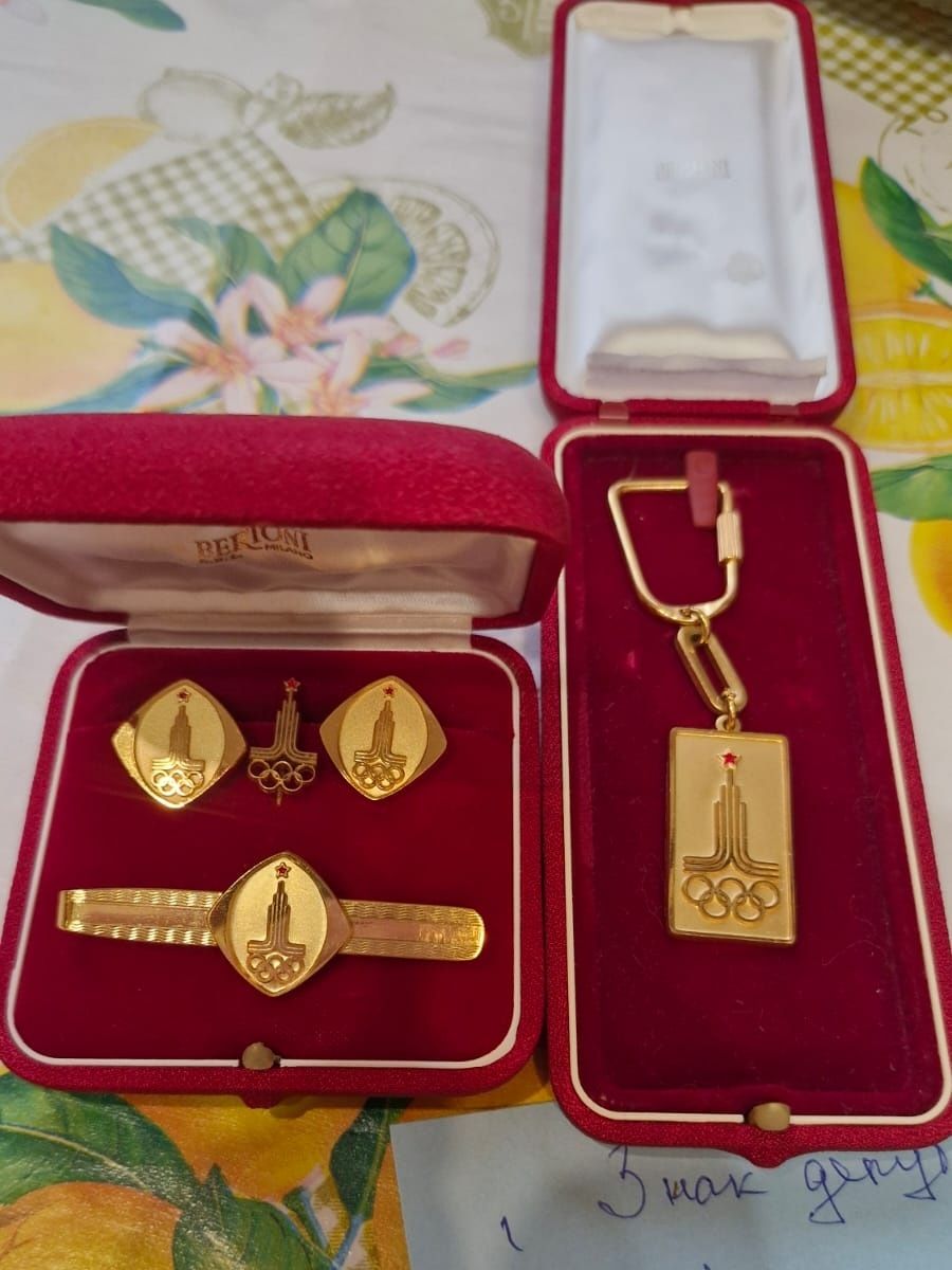 Фрачник, брелок, запонки, зажим для галстука. Сделано в Италии (Милан). Фирма "Bertoni" - официальный изготовитель сувениров к Олимпиаде 80. Родные коробки.