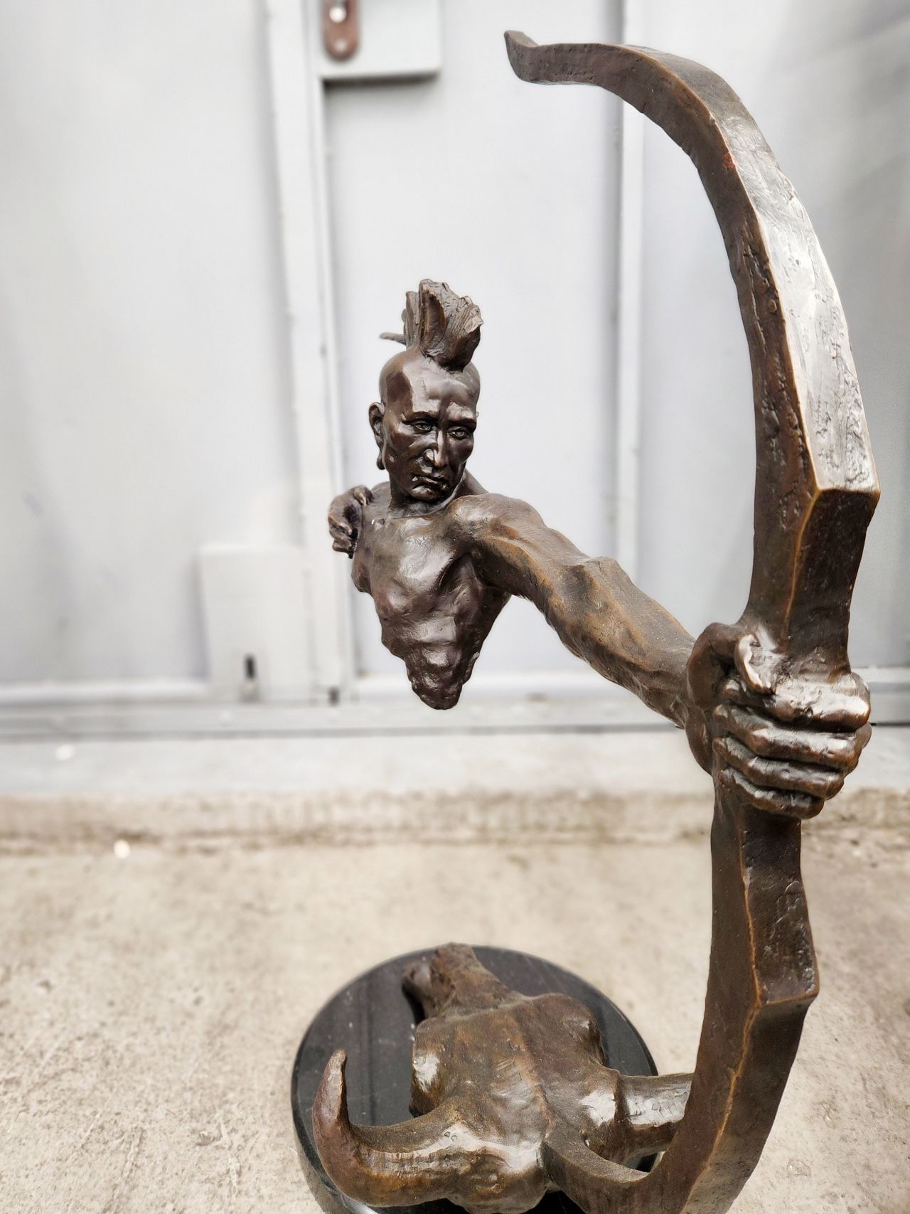 Представляем крупную, кабинетную работу, выполненную по модели канадского скульптора. Весом почти 15кг, 82см в высоту. Вещь необычная-вся конструкция по сути крепится на луке. Выглядит очень стильно.