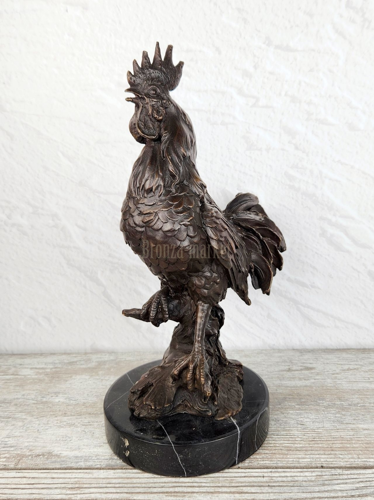 Представляем достаточно крупную скульптуру (32см; 3,2кг), изображающую петуха. Обращает на себя внимание предельное внимание к каждому сантиметру работы, в мельчайших подробностях передана структура оперения птицы.