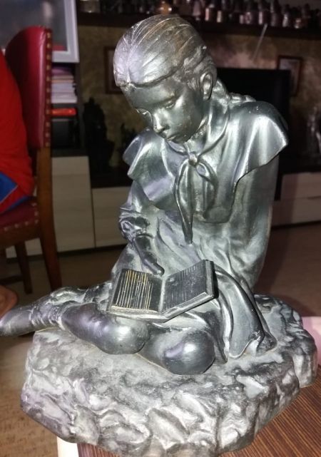 Пионерка читает книгу.Материал-чугун. Модель 1953 года. Скульптор-Верич. Отлита на заводе Куса в 1957 год СССР.