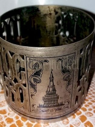 С изображением видов столицы. Серебро 875пр.,70-е годы. Под стандартный стакан.