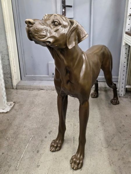 Представляем очень большую и тяжёлую (1,16м в длину, 38кг чистой бронзы) садовую скульптуру. Такая собака будет отлично смотреться на свежем воздухе, в саду или парковой зоне. Скульптура, исполненная на высочайшем уровне, мастерски передает характерные анатомические особенности породы, пропорции кажутся идеальными.