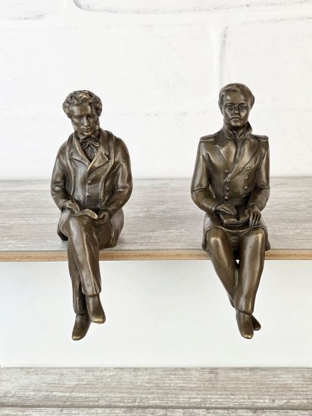 Представляем авторские, стильные вещи для украшения полок, в особенности книжных. В нашем магазине на данный момент можно приобрести Пушкина и Лермонтова, но будут ещё Есенин и Достоевский. Статуэтки небольшие (16см) но качественные. Здесь использовалась бронза самого высокого качества, кроме того особое внимание уделено проработки мелких деталей одежды, особенностей лица.