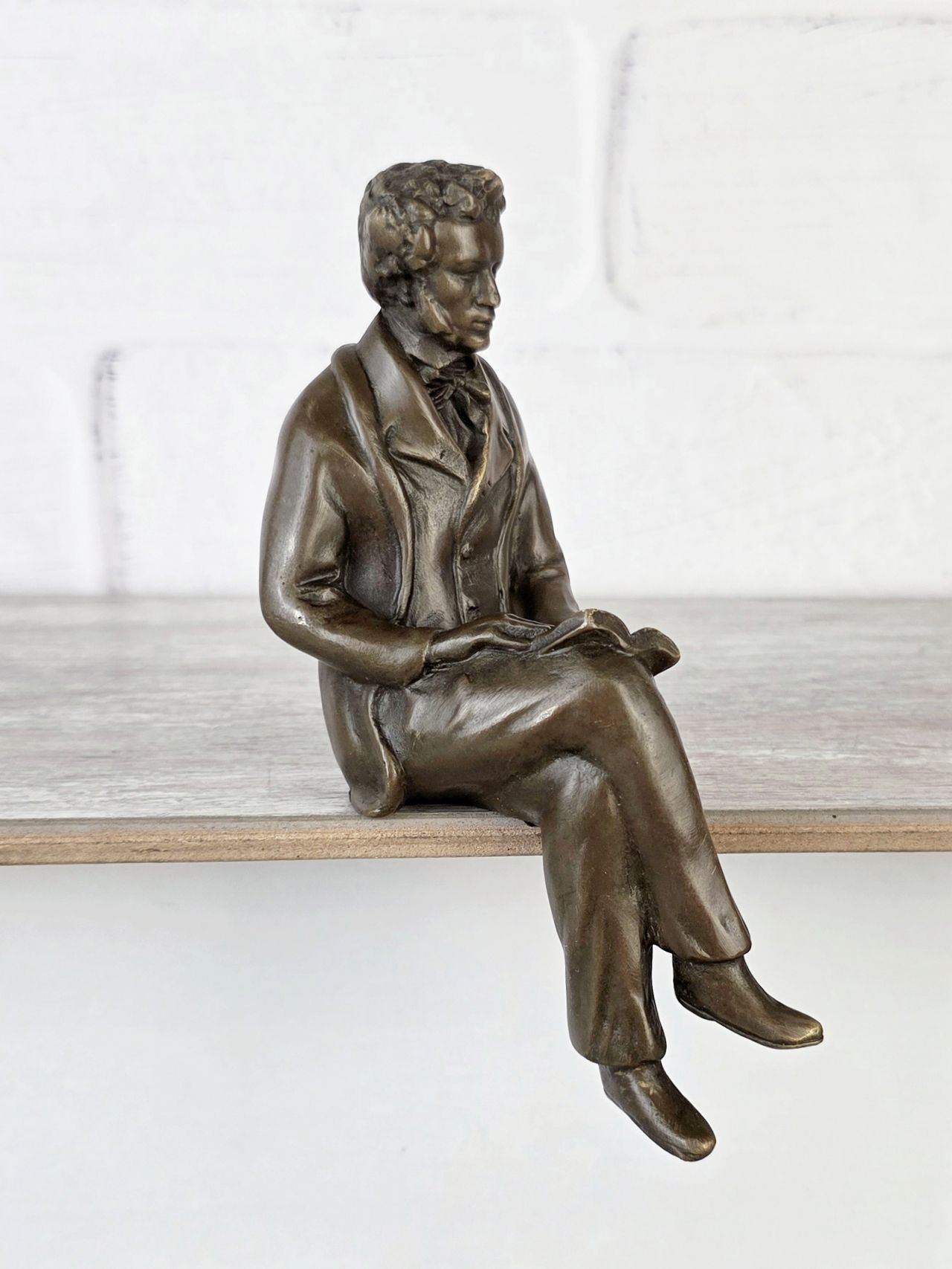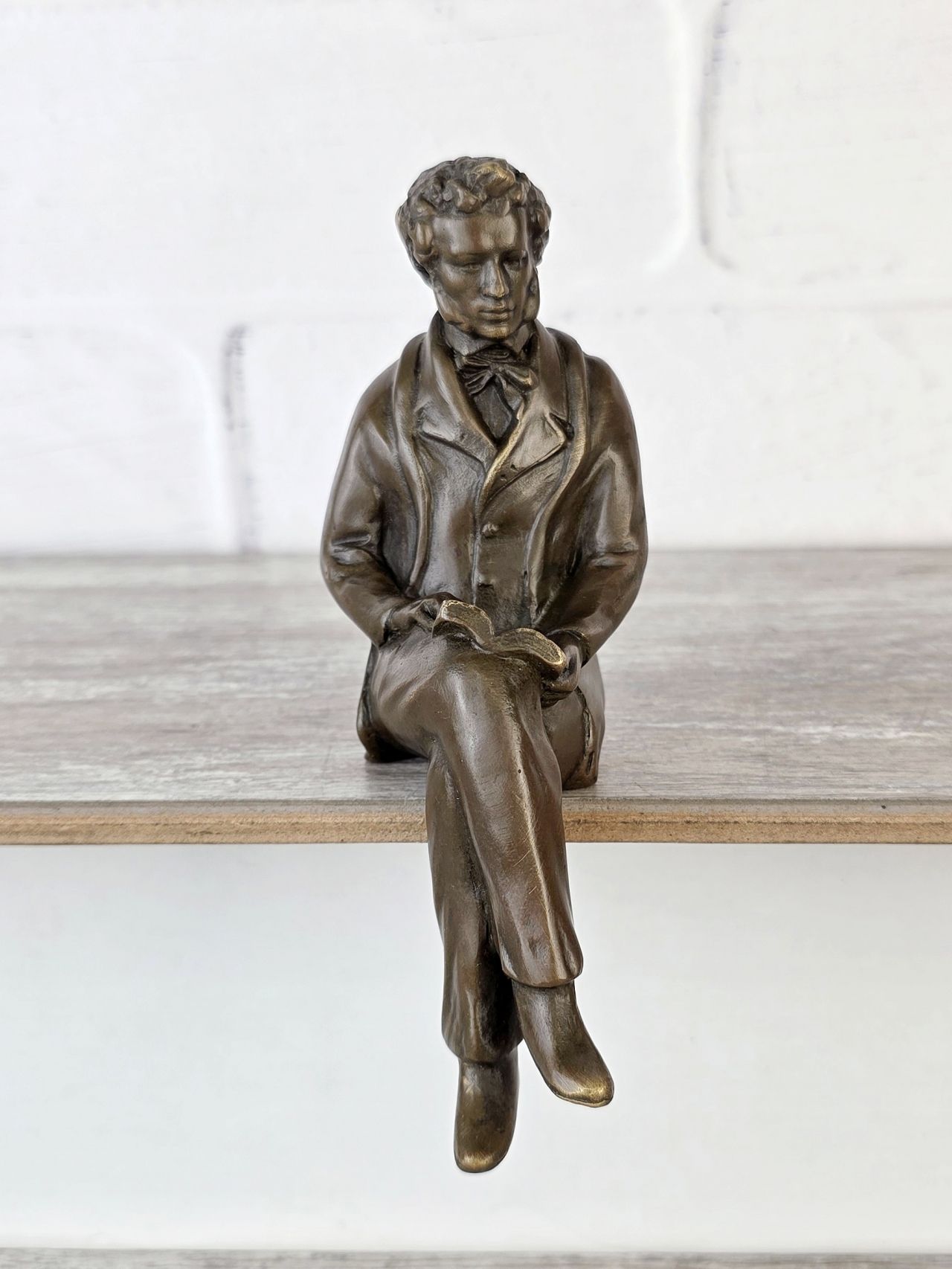 Представляем авторские, стильные вещи для украшения полок, в особенности книжных. В нашем магазине на данный момент можно приобрести Пушкина и Лермонтова, но будут ещё Есенин и Достоевский. Статуэтки небольшие (16см) но качественные. Здесь использовалась бронза самого высокого качества, кроме того особое внимание уделено проработки мелких деталей одежды, особенностей лица.
