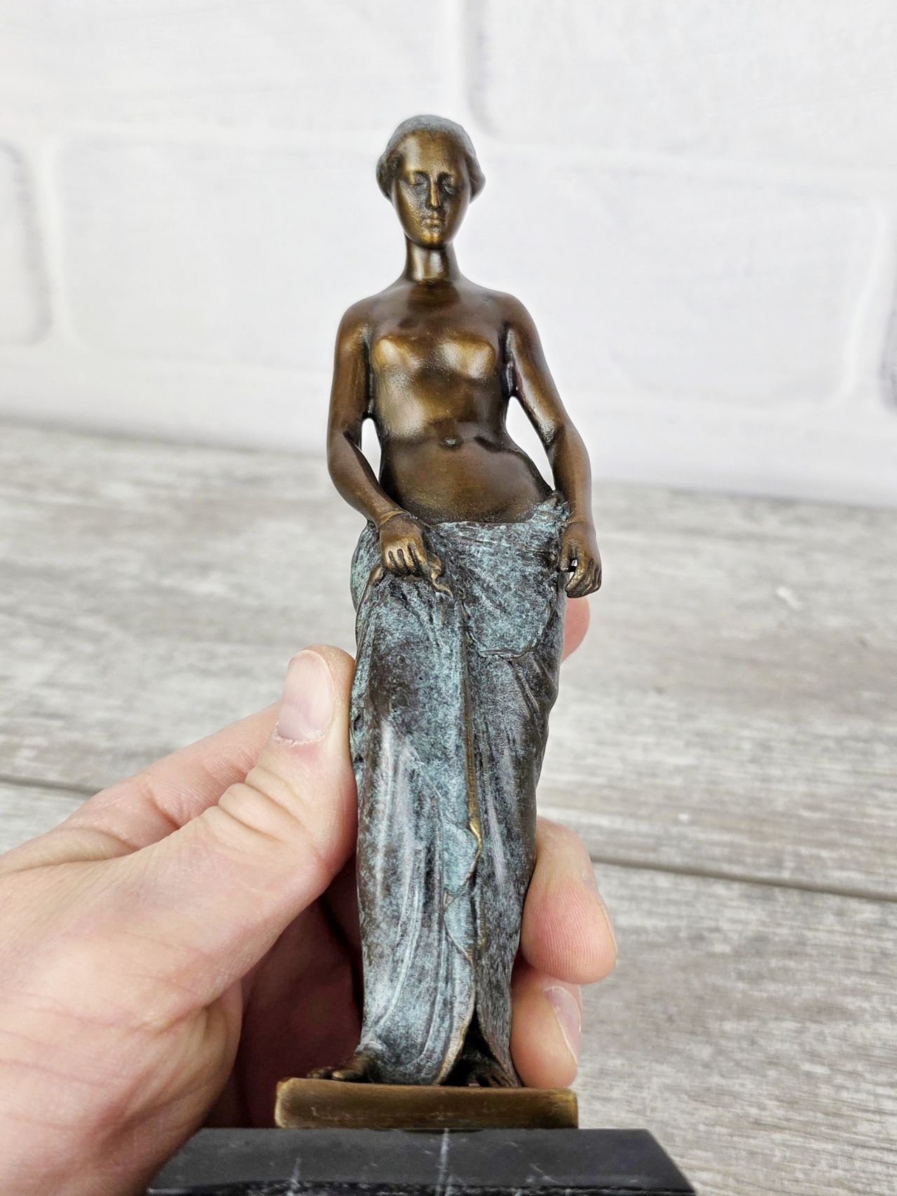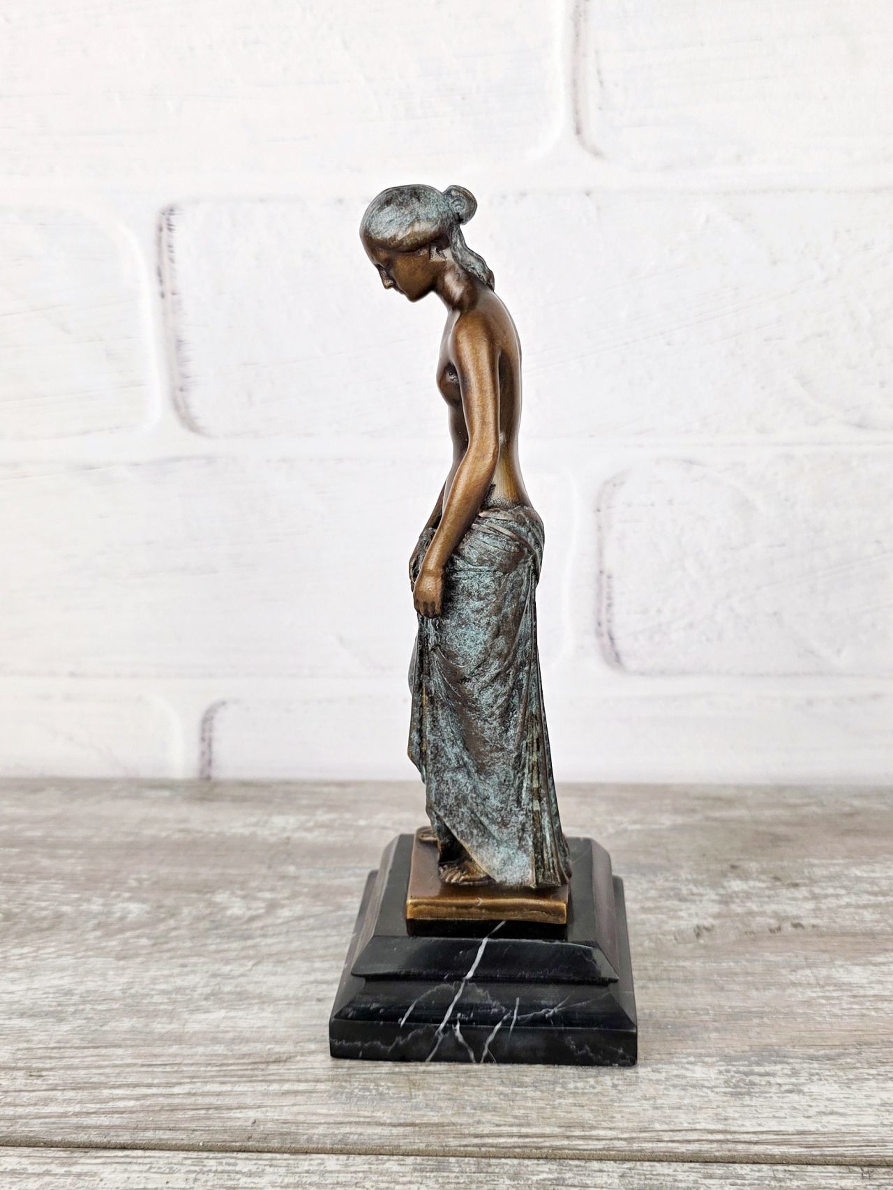 Представленная статуэтка является уменьшенной репродукцией работы известного датского скульптора. Оригинальное название "Slave Girl". Изображает молодую греческую рабыню, закованную в кандалы. Оригинал находится в музее Статенса в Копенгагене.
