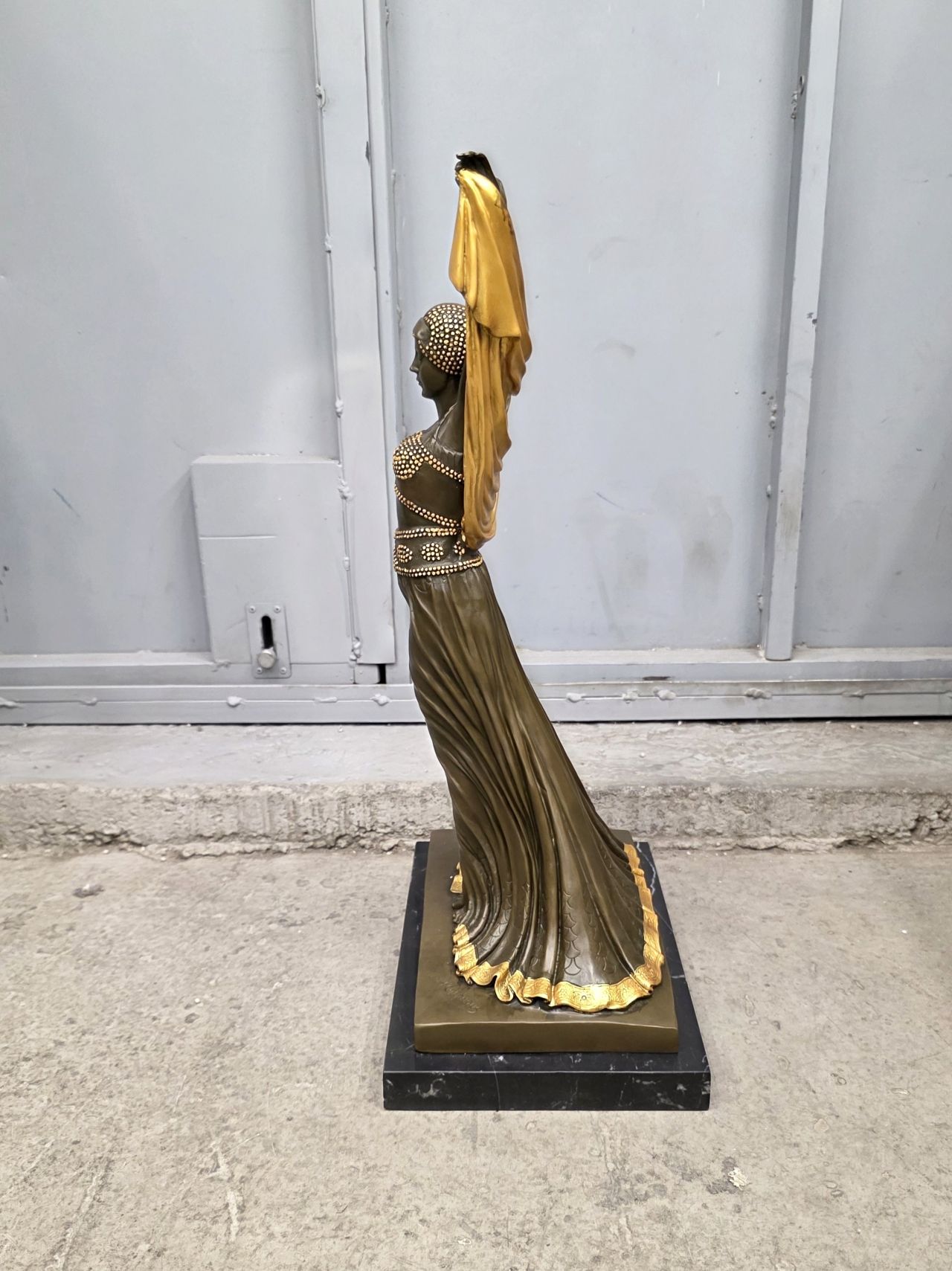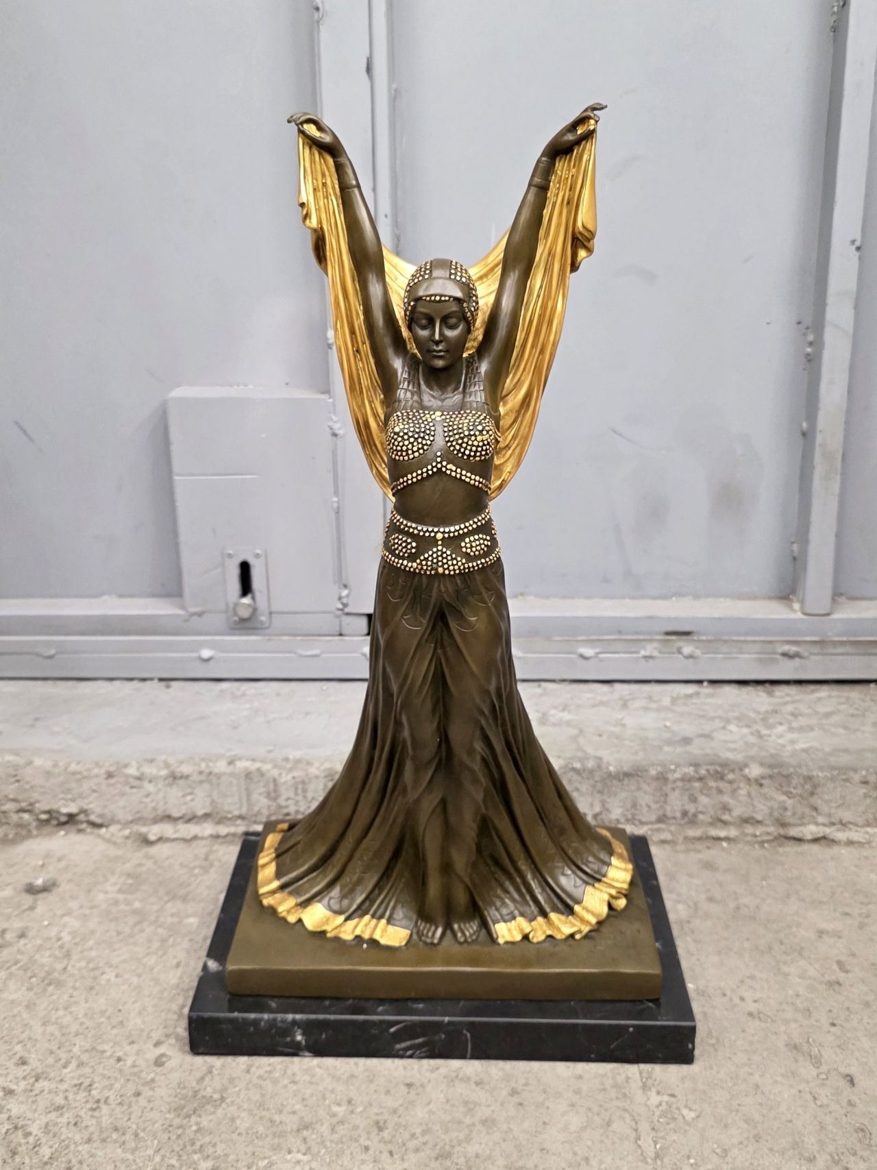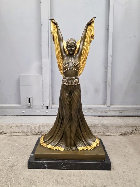 Представленная скульптура является репродукцией знаменитой работы в стиле ар-деко под названием «Саломея» (Salomе) или «Золотая танцовщица» (Golden Dancer) румынского скульптора Деметра Чипаруса
