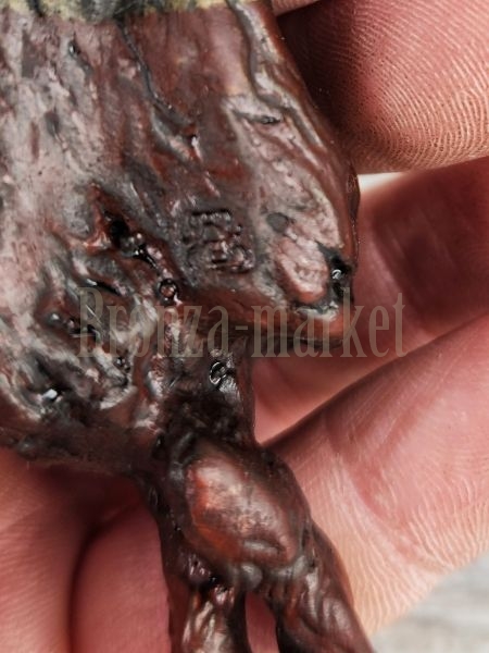 Клеймо "Литера "В" в кувшине" ставилось на изделия, отлитые на фабрике Бергмана. Венская бронза – это особый жанр скульптурной миниатюры. В этом жанре создавались яркие статуэтки из бронзы, раскрашенные вручную. Стиль "венской бронзы"- это прежде всего небольшие и очень качественные статуэтки предусматривающие мельчайшую детализацию каждого элемента.
