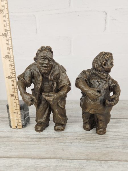 Парные авторские статуэтки, с клеймом, изображающие счастливых дедушку и бабушку. Общий вес - 4кг чистой бронзы. Обратите внимание на качество проработки, каждая морщинка, взгляд, проработаны тщательнейшим образом. Поверхность скульптуры словно бы шершавая, приятная на ощупь. Выглядит дорого и качественно.