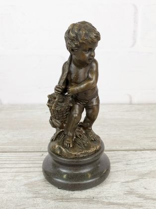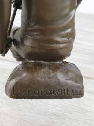 Крупная (43см, 13,5кг) кабинетная скульптура, выполненная по модели европейского скульптора. Обращает на себя внимание предельное внимание к каждому сантиметру работы, в мельчайших подробностях переданы черты лиц, детали одежды.
