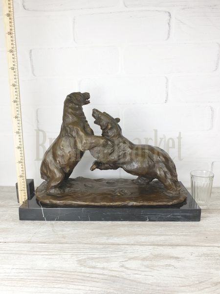 Представляем авторскую работу, в полной мере отражающую всю красоту животного мира. Скульптура, исполненная на высочайшем уровне, в мельчайших подробностях передает анатомию тела животных, характерный рельеф мускулатуры. Скульптура очень крупная и тяжёлая (54см; 26,5кг) - достойный подарок охотнику, шикарный предмет интерьера.