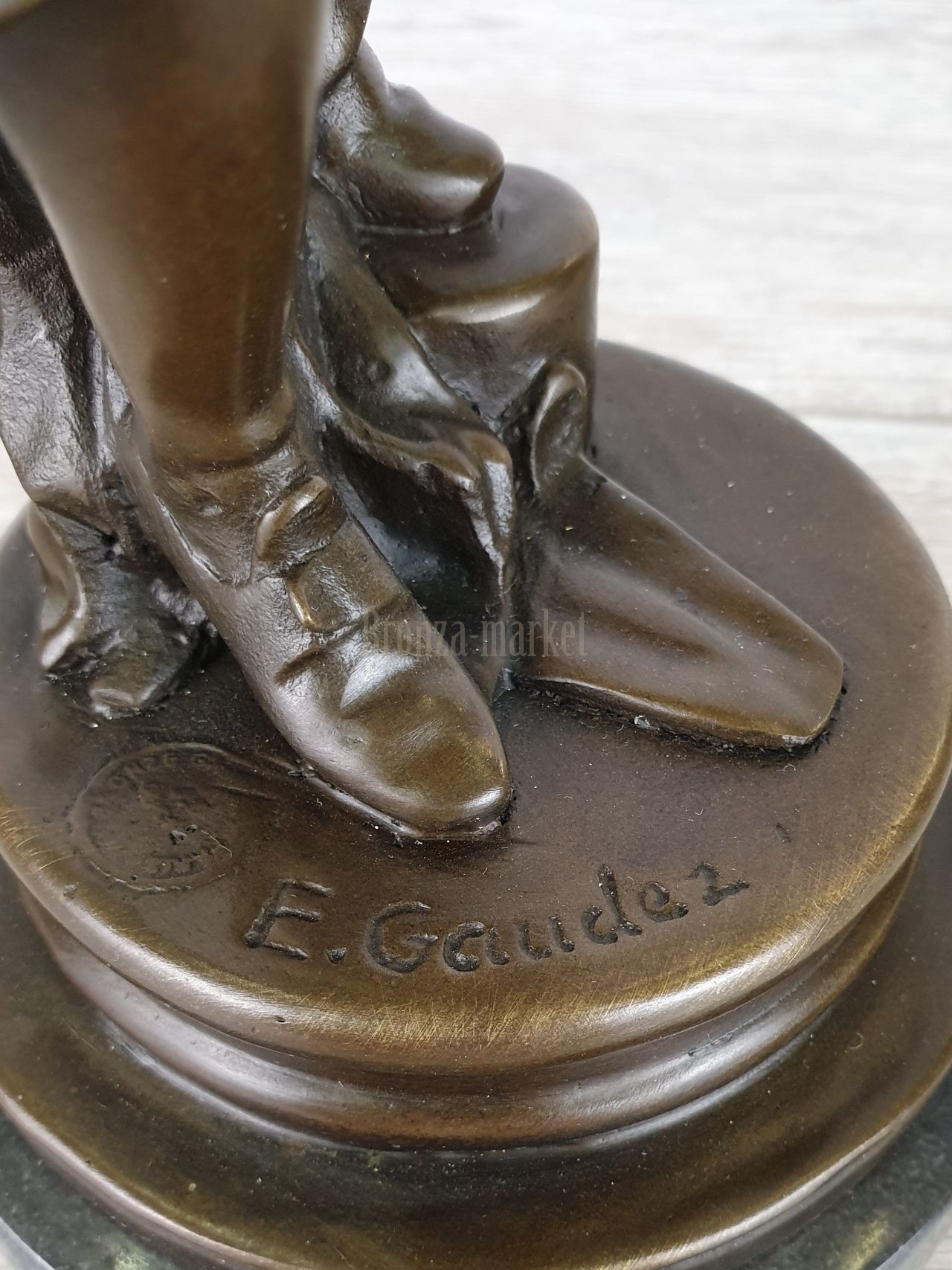 Адриен Этьенн Гауде (Adrien Etienne Gaudez, 1845-1902) - известный французский скульптор, получил профессиональное художественное образование в Парижской Школе изящных искусств, где он обучался в классе выдающегося французского скульптора Франсуа Жоффре. В 1864 году, через два года после окончания Школы, Гауде впервые представил свои композиции на Парижском Салоне. Автор был удостоен престижной бронзовой награды. В 1881 году за представленные скульптурные произведения на Салоне Гауде был награжден золотой наградой. Темы его работ разнообразны, больше всего автора интересовали национальные образы и типажи. Подобные произведения, предназначенные для спокойного созерцания и любования, являлись непременным элементом украшения интерьеров состоятельных горожан последней трети XIX века.