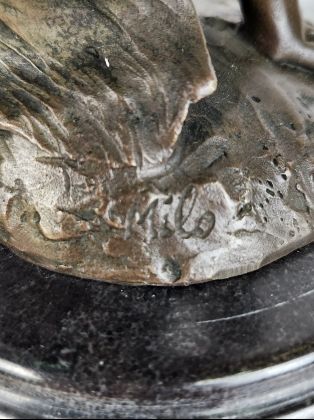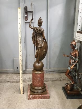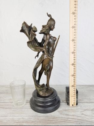 Представляем крупную и тяжёлую (93см-высота, 27кг), кабинетную скульптуру, превосходного качества исполнения.Скульптура установлена на красный мрамор.