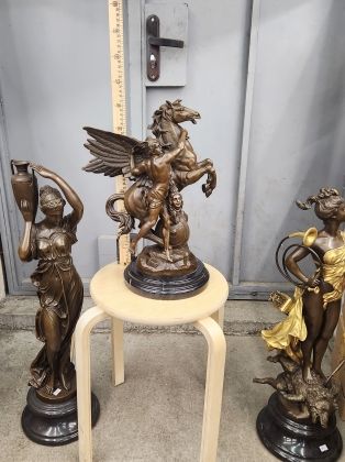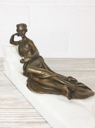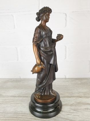 Представляем шикарную, бронзовую скульптуру, изображающую богиню астрономии Уранию. Изящная, стильная вещь, выполнена в цвете, что придаёт ей особую привлекательность. Скульптура достаточно крупная (43см в высоту, 3,3 кг чистой бронзы).