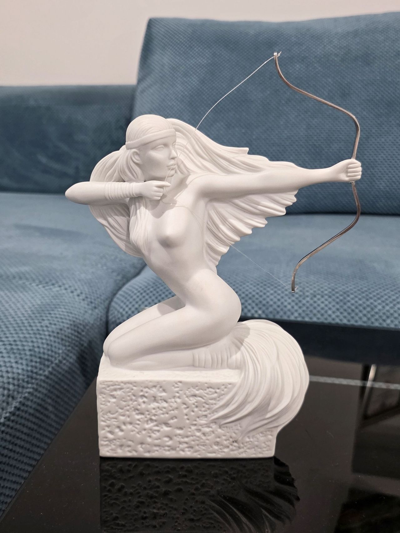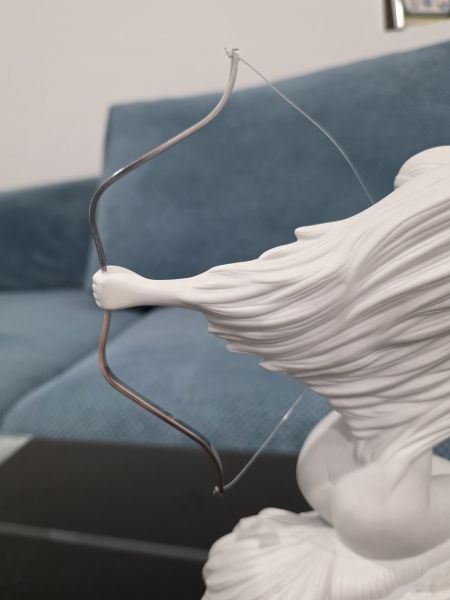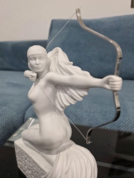 Имеется реставрация небольшая в районе руки, которая держит лук. Сам лук вылетал и его заново вклеивали. Но сделано хорошо! Можете видеть это на фото. В родной коробке.