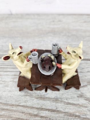 Сами по себе поросята очень маленькие (средний размер 5,5см в высоту), но насколько тщательно проработана каждая деталь, каждый поросёночек по своему расскрашен, у каждого своя поза и свой музыкальный инструмент. Именно в мелкой пластике познаётся талант мастера.