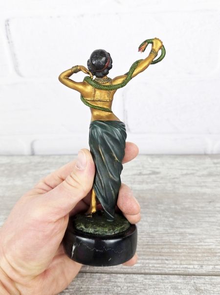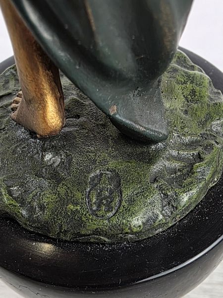 Клеймо "Литера "В" в кувшине" ставилось на изделия, отлитые на фабрике Бергмана". Венская бронза – это особый жанр скульптурной миниатюры. Он сформировался в конце XIX века, в эпоху неутомимых изобретателей и паровых машин. В этом жанре создавались яркие статуэтки из бронзы, раскрашенные вручную.