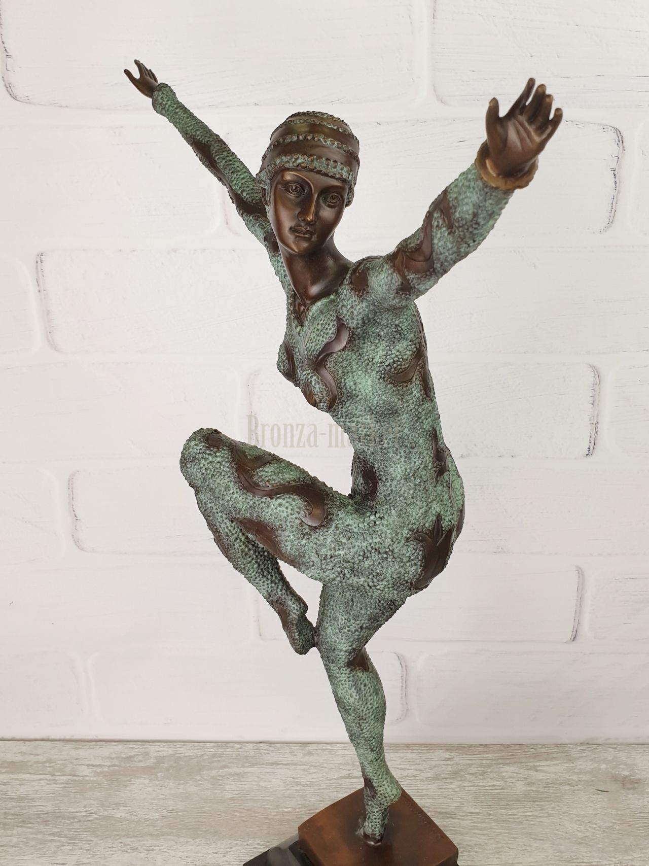 Demetre H. Chiparus (1886-1947) - один из выдающихся мастеров стиля "арт-деко". Данное произведение - из числа наиболее знаменитой серии автора, изображающей "танцовщиц" и прекрасных женщин своего времени. Его скульптуры выдвигают на первый план бесконечную красоту танцоров и моду того периода. Назвав своё произведение "STARFISH DANCER" автор особо подчёркивает великолепие костюма девушки. Словно кожей морской звезды обтягивает он идеальную фигуру танцовщицы.