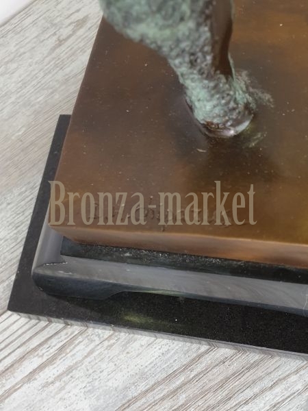 Данное произведение выделяется в первую очередь своими размерами (69см в высоту, более 10кг чистой бронзы), вручную покрыта зелёной патиной, что придаёт ей особую привлекательность. Это большая кабинетная скульптура, будет выгодно смотреться на полу в гостинной или в фойе просторного зала, причём как в единичном варианте, так и в паре с другой похожей скульптурой "Танцовщица в шляпке (крупная, зел)".