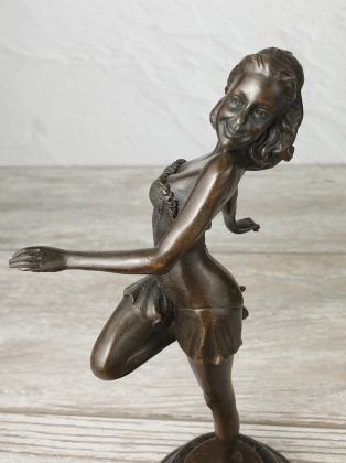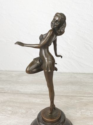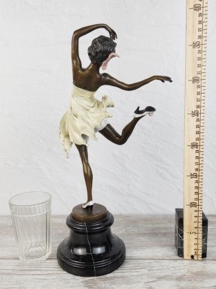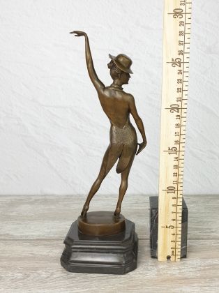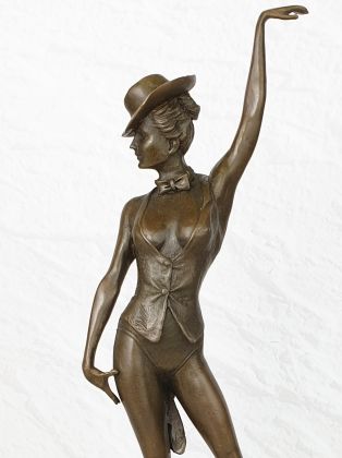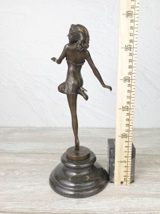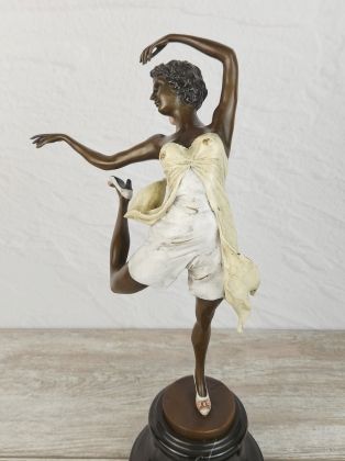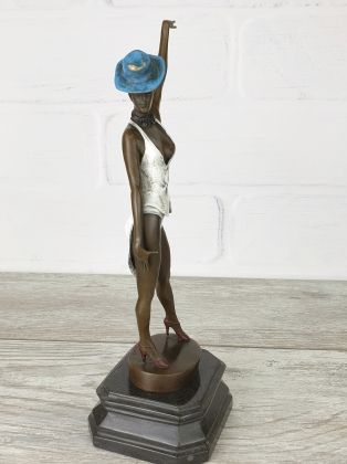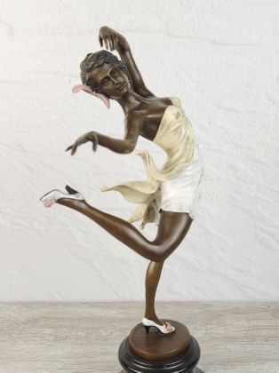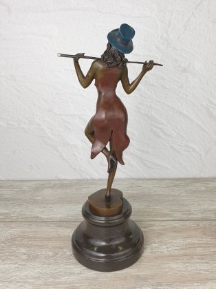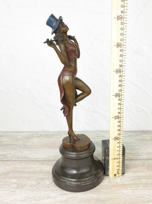 Авторская работа европейского скульптора, изображающая девушку в танце. Автор мастерски передаёт динамику танца, сложную анатомию девушки во время движения. И конечно отмечаем раскраску..., она придаёт работе яркий, декоративный эффект.