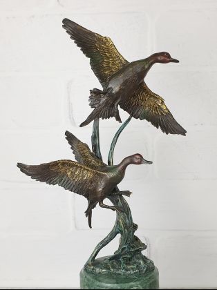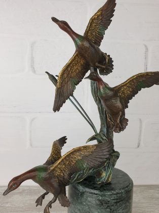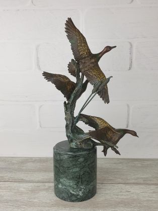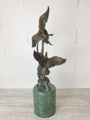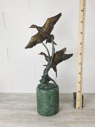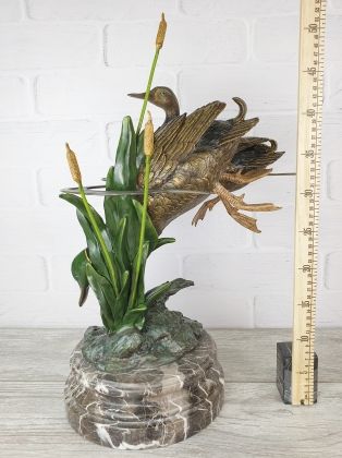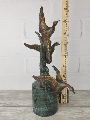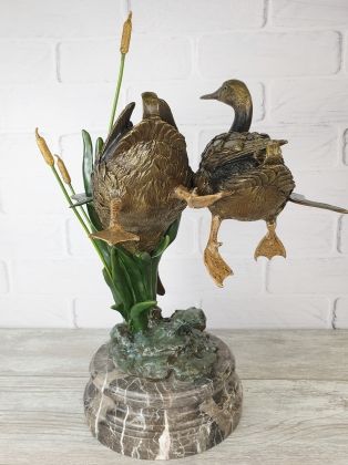 Представляем крупную (высота 47см), авторскую скульптуру, изображающую плывущих уток, отличающуюся исключительным качеством исполнения. Запечатлен очень интересный момент - утка и утёнок плывут, причём утка мама ещё и ныряет.