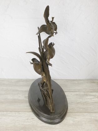 Уникальная по своей сложности работа. Вы только посмотрите на эти камышовые растения идущие казалось бы фоном к уткам. Просто завораживает количество тонких, длинных, сложных в исполнении деталей из которых состоит растение.
