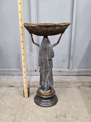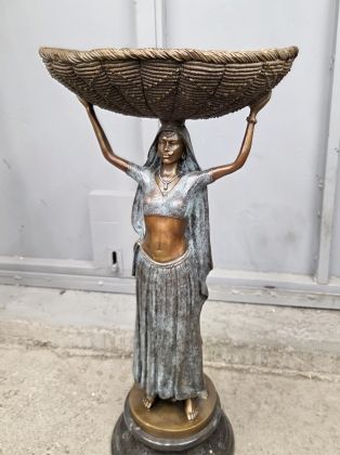 Представляем крупные, напольные скульптуры-вазы, которые можно использовать в том числе как горшок для цветов. В чашу насыпается земля и вырастает цветок. Также можно поставить её при входе в дом и складывать туда разные мелочи, ключи например. Скульптура полностью, включая подставку, состоит из бронзы. Покрытое зелёной патиной, платье девушки добавляем особый шик скульптуре. Большая, шикарная вещь, в паре с вазой "Девушка в зелёном"(правая) создаст единый ансамбль и станет украшением интерьера Вашего дома.
