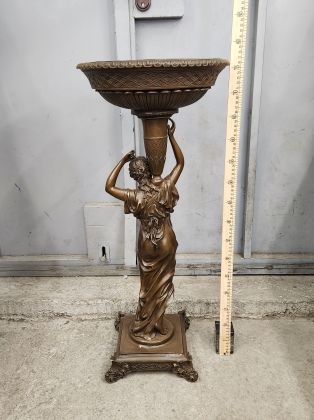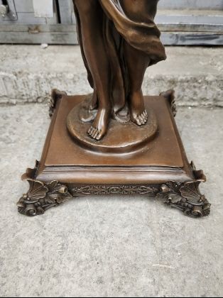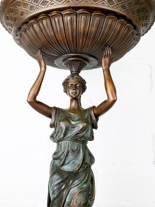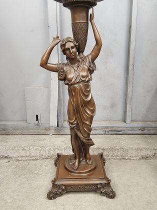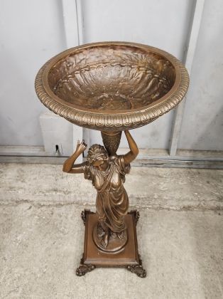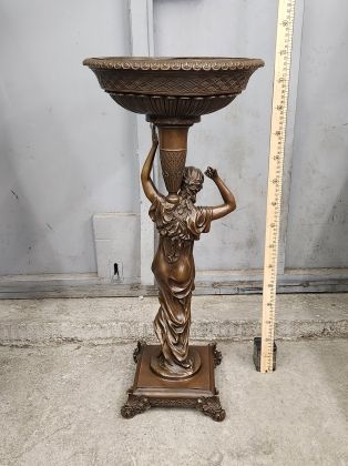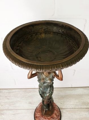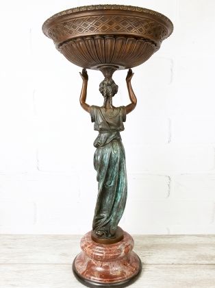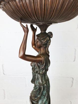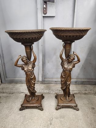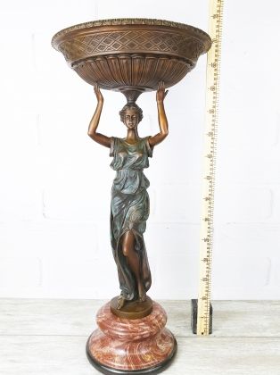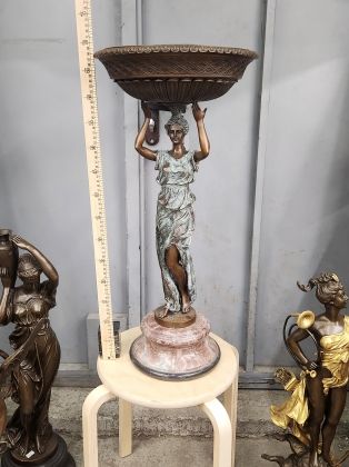 Представляем крупные, напольные скульптуры-вазы, которые можно использовать в том числе как горшок для цветов. В чашу насыпается земля и вырастает цветок. Также можно поставить её при входе в дом и складывать туда разные мелочи, ключи например. Скульптура полностью, включая подставку, состоит из бронзы. Покрытое зелёной патиной, платье девушки добавляем особый шик скульптуре. Большая, шикарная вещь, в паре с вазой "Девушка в зелёном"(левая) создаст единый ансамбль и станет украшением интерьера Вашего дома.