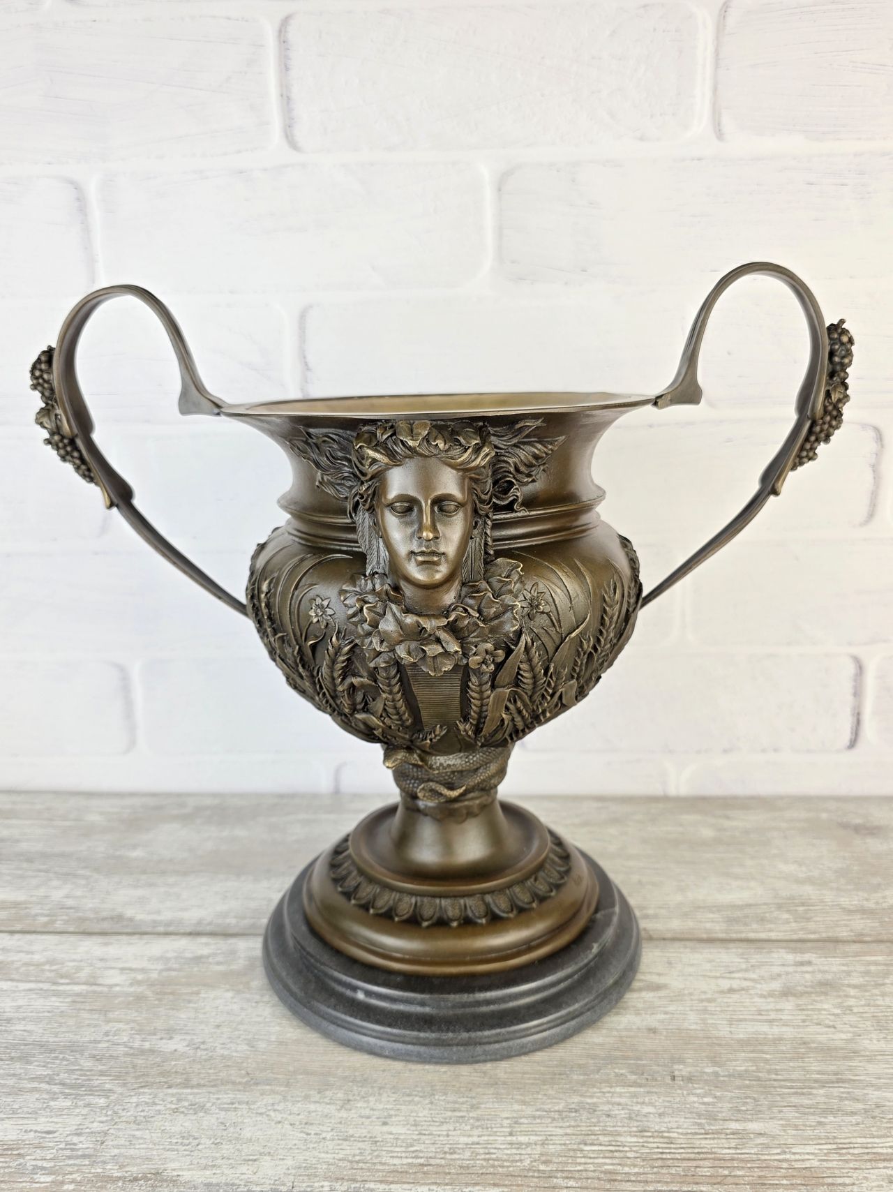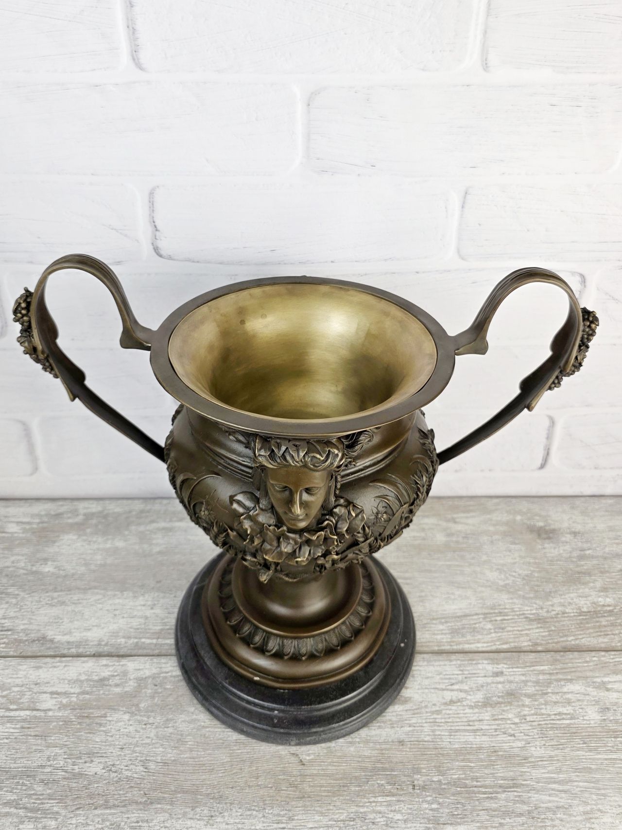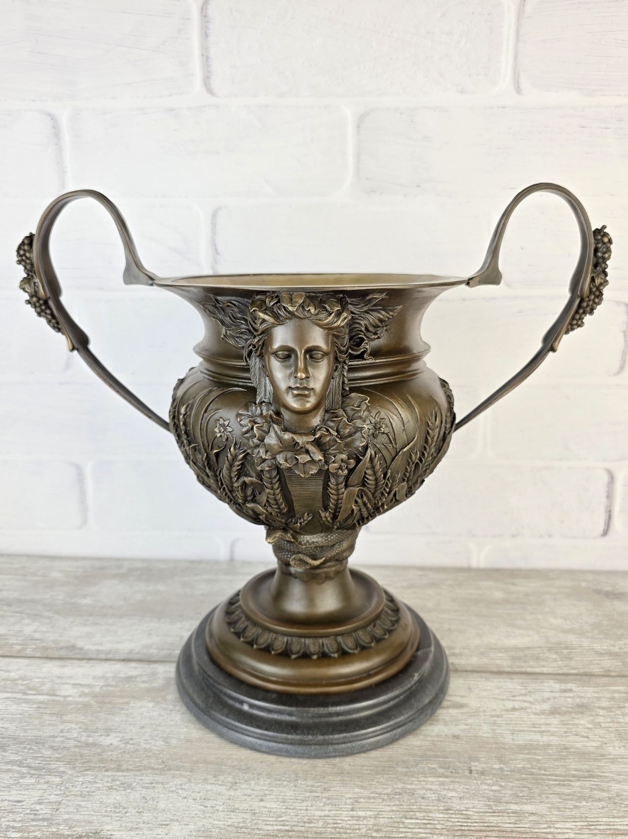 Представленная ваза является бронзовой репродукцией старинной вазы. Оригинальная версия была сделана из мрамора.