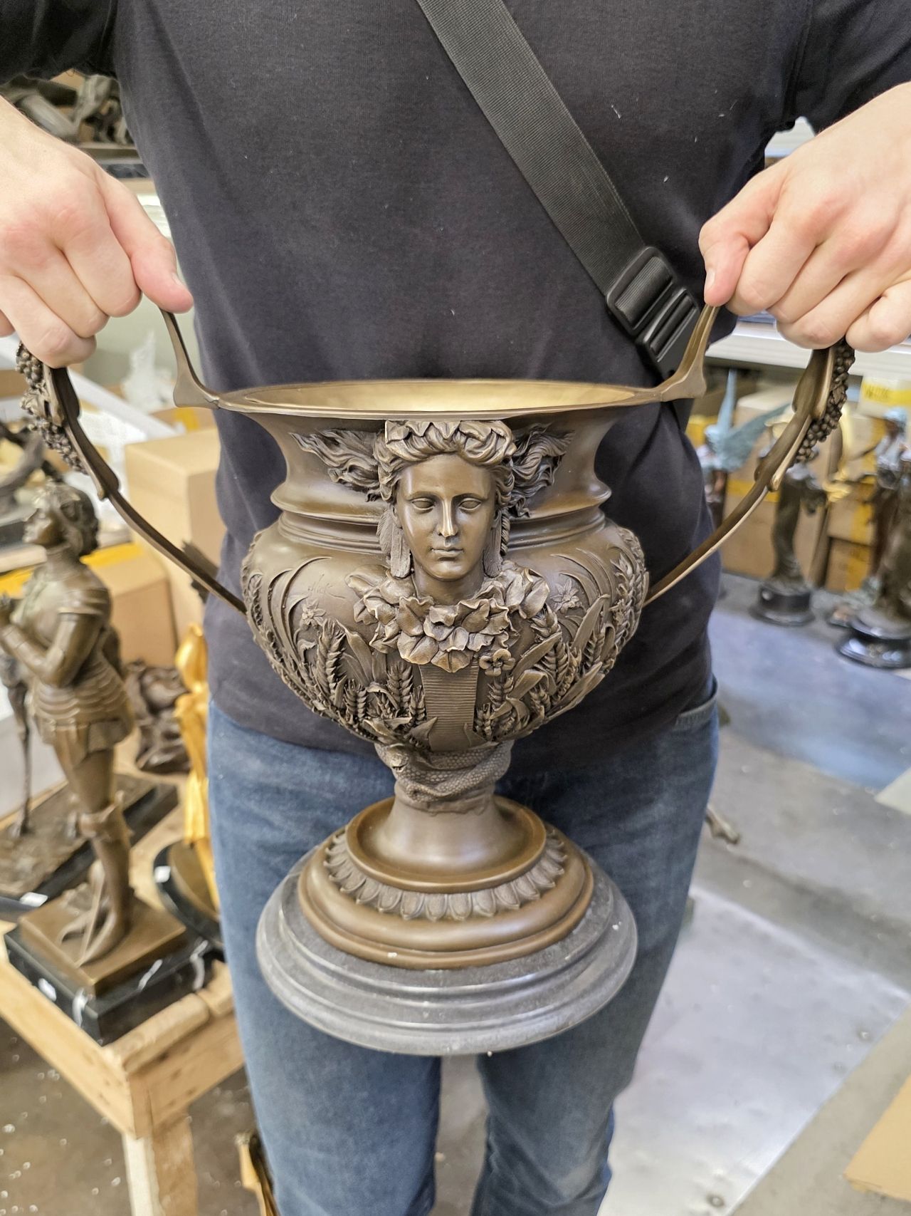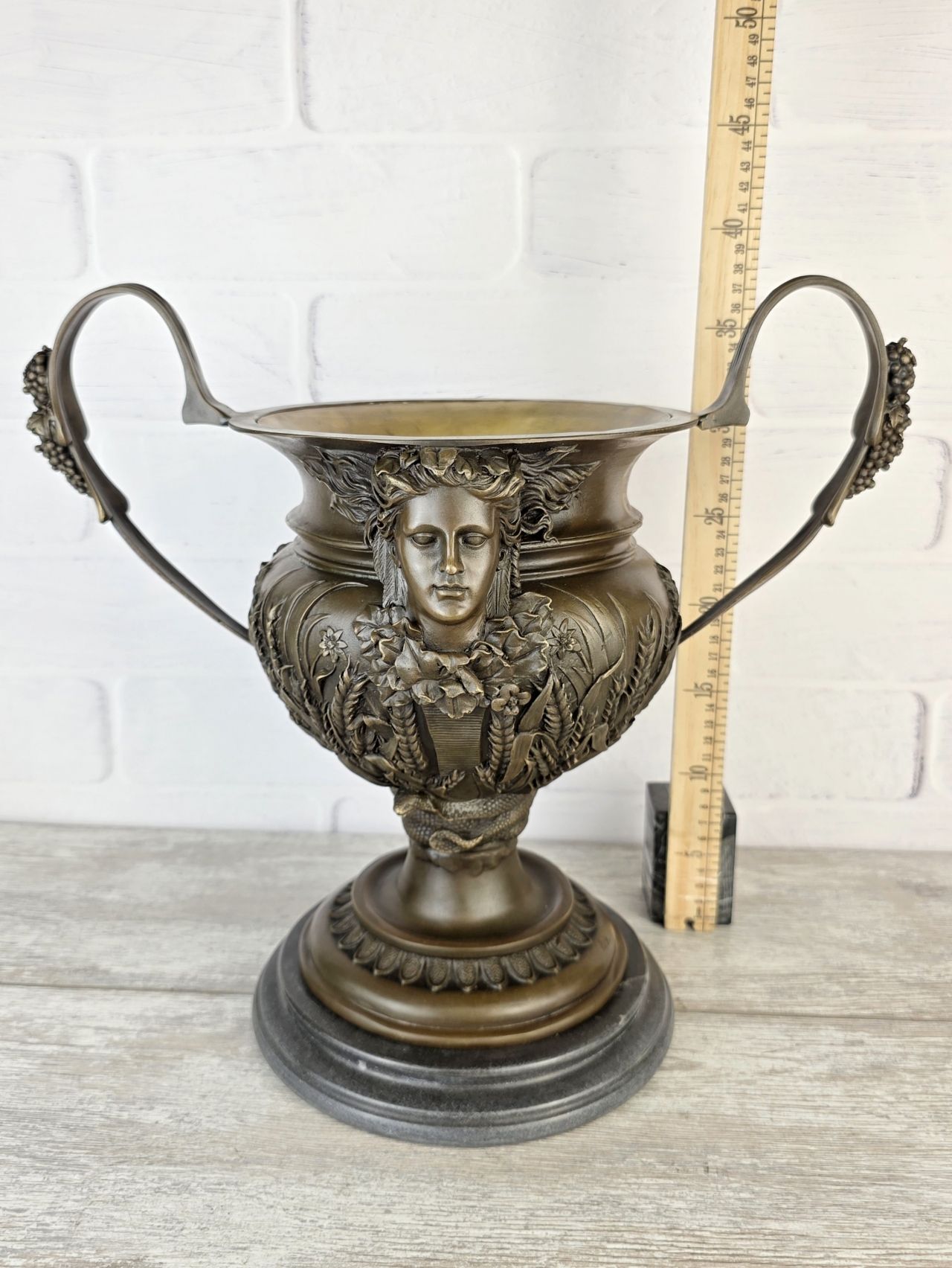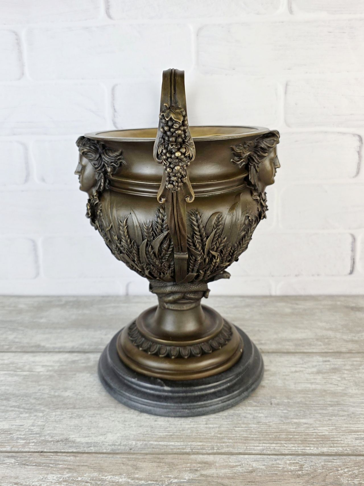 Представленная ваза является бронзовой репродукцией старинной вазы. Оригинальная версия была сделана из мрамора.