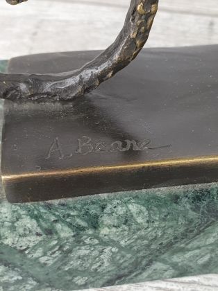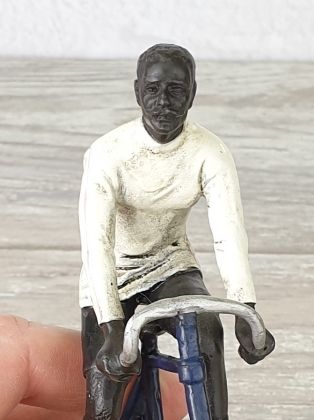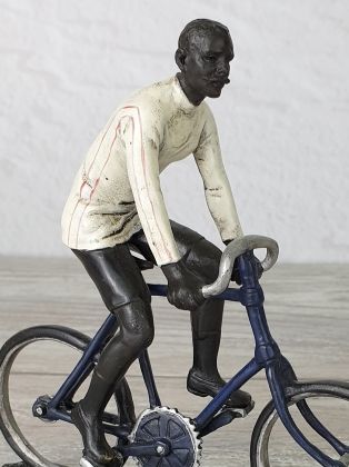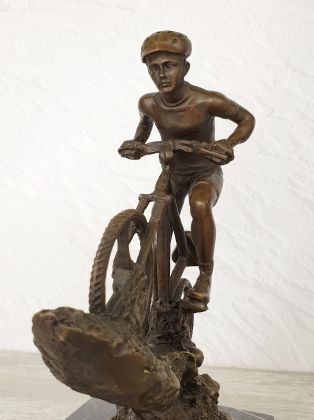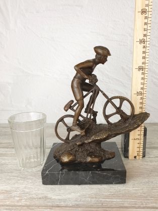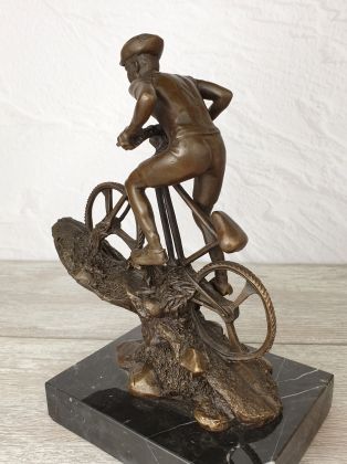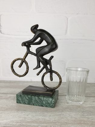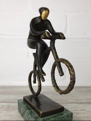 Качественная работа европейского скульптора, изображающая велосипедиста. Автор умело передаёт динамику момента подъёма в горку, поза велосипедиста естественна, реалистична.