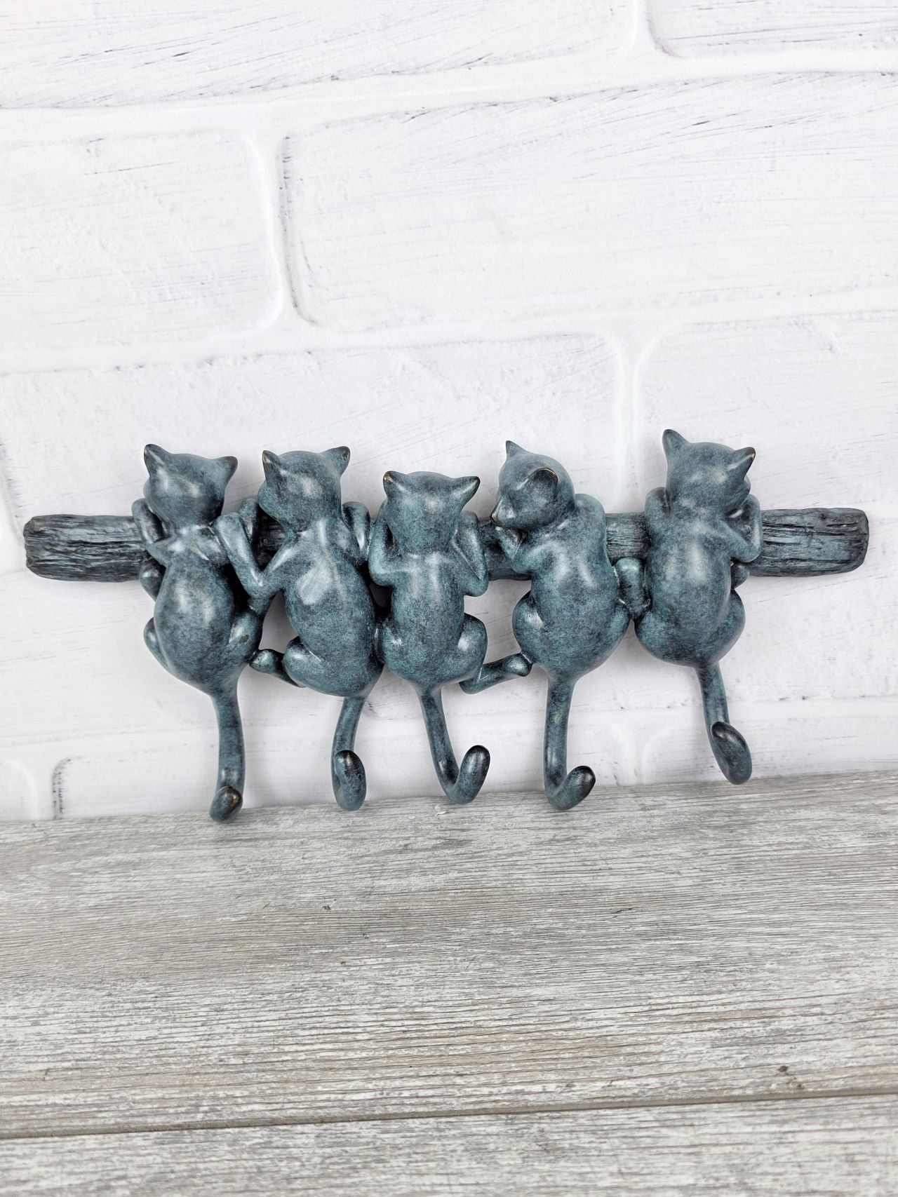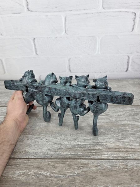 Представляем дизайнерское решение для прихожих и других помещений, где нужна стильная вешалка. Состоит полностью из бронзы (2,3кг). Каждый котик не похож на другого. С обратный стороны вешалки есть отверстия для крепления. Такие работы подбирают под интерьер.