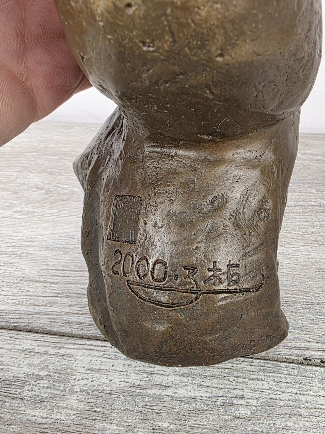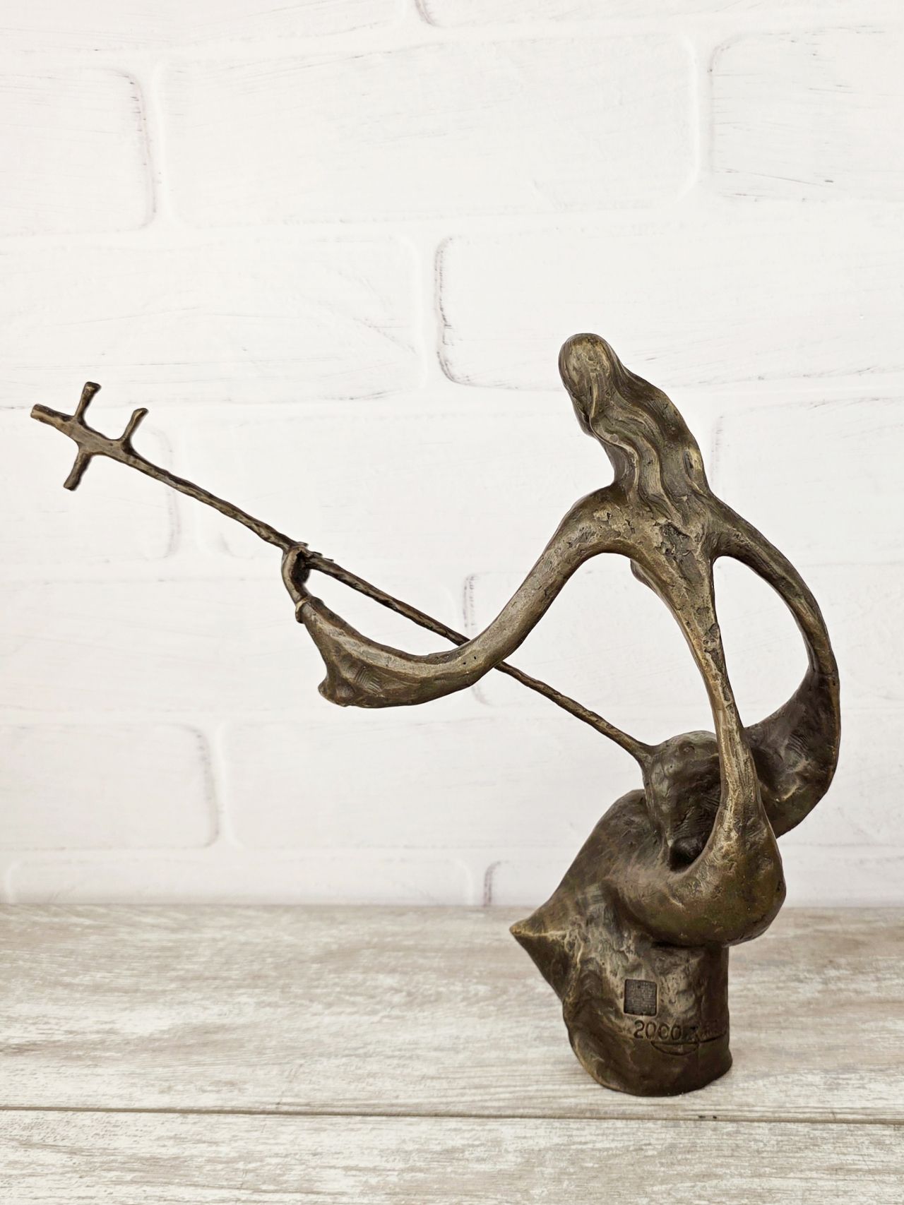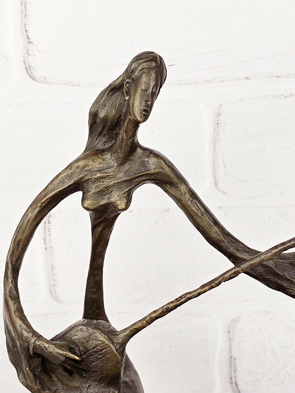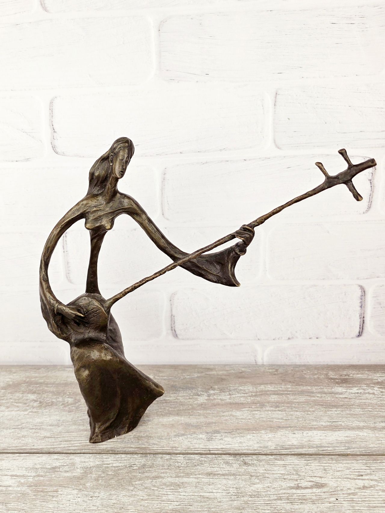 Достаточно крупная (32см) скульптура, относящаяся к современному искусству. Одна из серии авторских работ, датированных началом 20го века и изображающих восточных девушек, играющих на самобытных, архаичных музыкальных инструментах. Статуэтка не имеет каменного основания, выполнена полностью из бронзы (2,4кг)