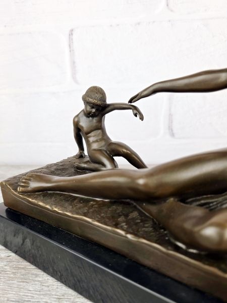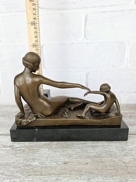 Представленная статуэтка является репродукцией работы известного французского скульптора, созданной примерно в 1925году. Оригинальное название Playtime" (Время игр). На скульптуре изображена полулежащая женская фигура (мать) и фигура ребенка (сына), тянущегося к ее руке. Композиция отличается элегантными упрощенными формами, характерными для эпохи ар-деко.