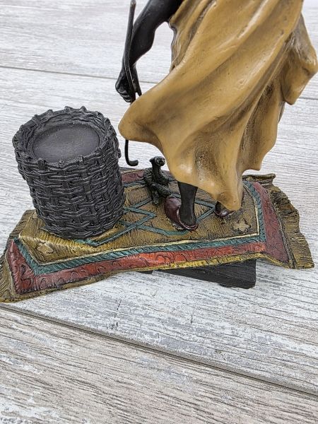 Представленная работа является характерным образцом венской декоративной бронзы начала XX века. Фигурка изображает заклинателя змей, играющего на флейте перед коброй, которая поднимается из плетёной корзины. Достаточно популярная композиция в востоковедческом искусстве того времени.