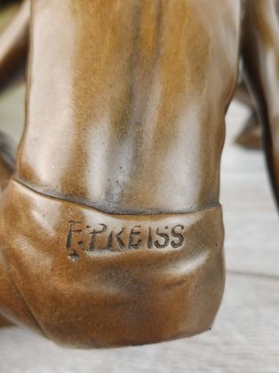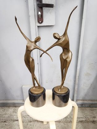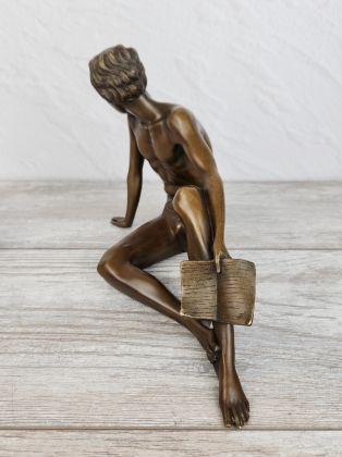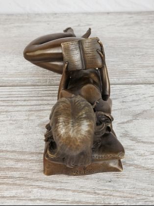 Представляем крупную и тяжёлую (60см высотой, 13кг) скульптуру "Амур и Психея" от французского скульптора Анри Годета. История любви Амура и прекрасной принцессы Психеи была популярной темой среди многих художников 19 века. Мастерство скульптора проявляется в сложном изображении фигурной группы, особенно моделировании Амура с его остроконечными крыльями и восходящим взглядом, изогнутым телом и согнутым правым коленом.
