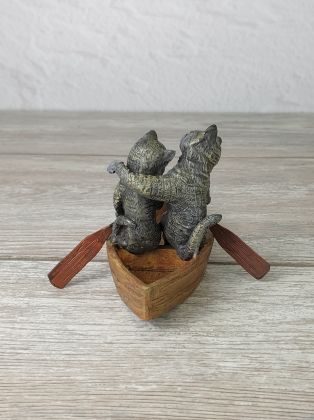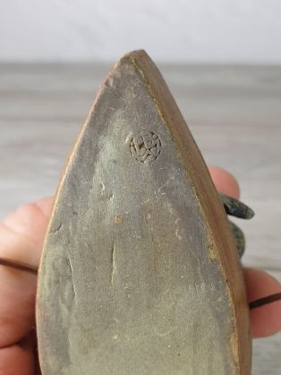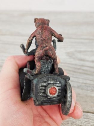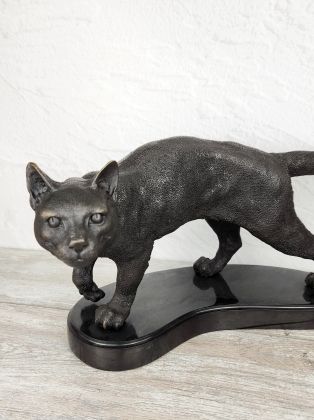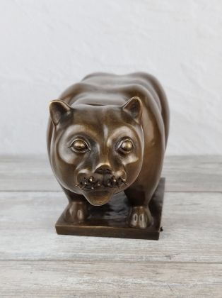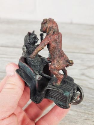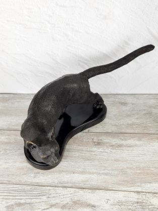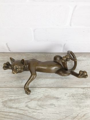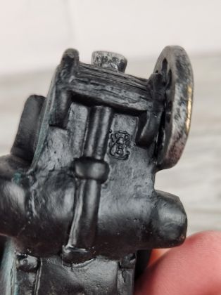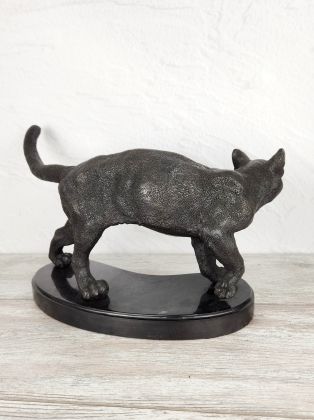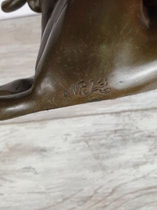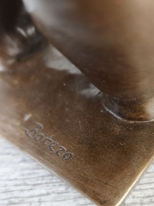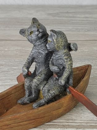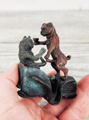 Клеймо "Литера "В" в кувшине" ставилось на изделия, отлитые на фабрике Бергмана. Венская бронза – это особый жанр скульптурной миниатюры. В этом жанре создавались яркие статуэтки из бронзы, раскрашенные вручную. Обращает на себя внимание изумительная проработка мелких деталей работы, каждая ворсиночка, каждый клочёчек шерсти на теле котёнка тщательно прописаны.