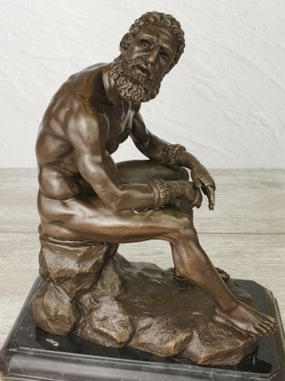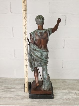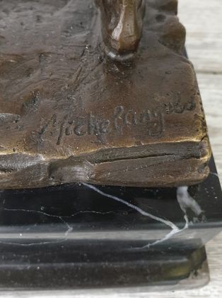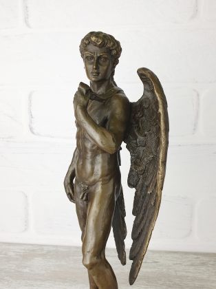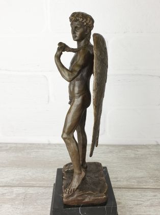 Данная работа является репликой известнейшей скульптуры Микеланджело "Давид" (1501-1504, Флоренция). В своё время Микеланджело сделал две скульптуры Давида: одна из них была с крыльями, другая без крыльев. Давид Микеланджело – юноша, выступивший в борьбу за свой народ, изображен в виде физически прекрасного юноши-атлета. Мастер изобразил героя перед битвой в момент высшего напряжения сил. В прекрасном и суровом лице Давида скульптор передал титаническую силу, непреклонную волю, гражданское мужество, безграничную мощь свободного человека. Микеланджело мечтал о создании самой прекрасной статуи для своей любимой Флоренции, и его мечта осуществилась.