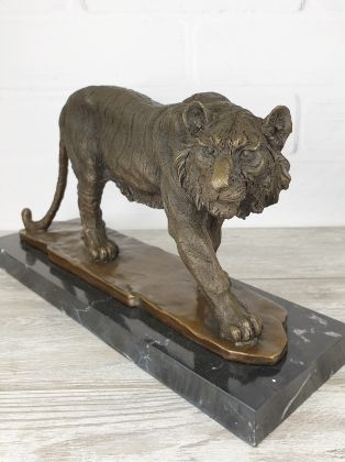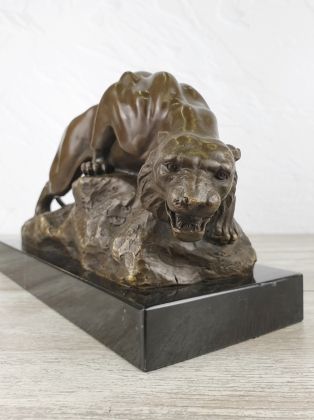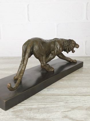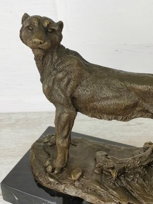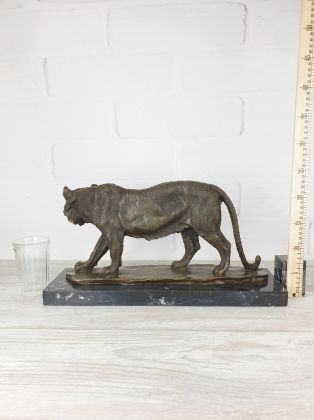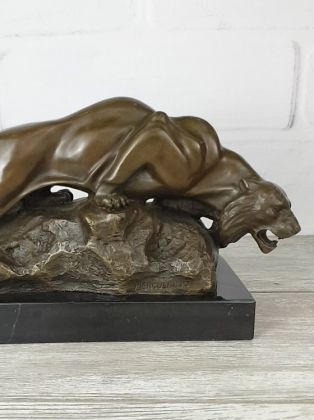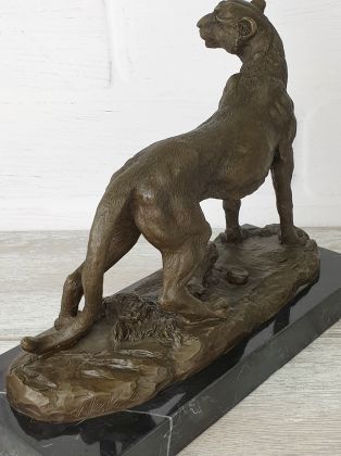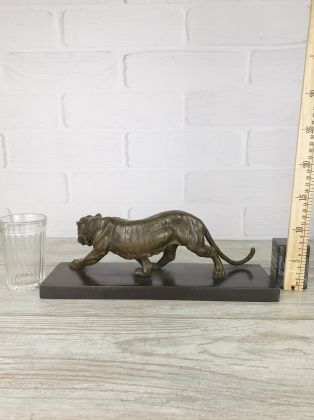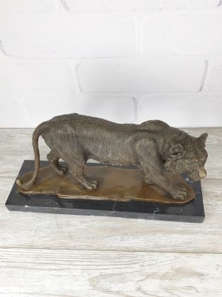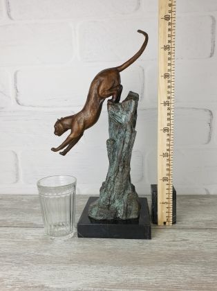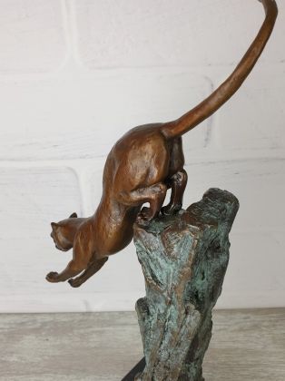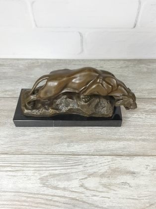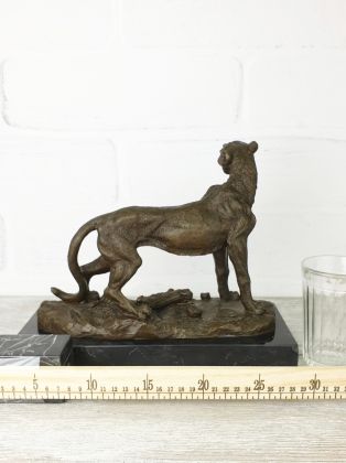 Авторская скульптура, изображающую гепарда. В данном произведении автор умело передаёт характерные черты гепарда: стройное, мускулистое тело, маленькую голову с приплюснутыми ушами. Тщательнейшим образом, в мельчайших подробностях передана структура шерсти зверя