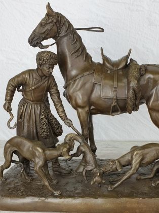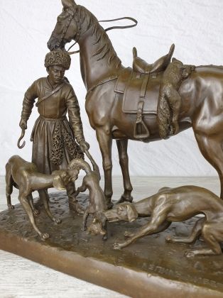 Либерих Николай Иванович (1828-1883 ) - выдающаяся фигура в истории русского искусства. Человек разносторонне образованный, он первую половину своей жизни посвятил военной службе, одновременно самостоятельно занимаясь лепкой и рисунком. А буквально через пару лет после завершения военной карьеры лейб-гвардии полковник Н.И. Либерих стал академиком Императорской Академии художеств. В 1865 г. получил приглашение императора Александра II участвовать в придворных охотах и создал серию бронзовых скульптур охотничьих трофеев. Скульптуры Н.И. Либериха неоднократно экспонировались на академических и международных выставках, продавались на выставках Общества поощрения художеств. Публика стремилась купить бронзовые скульптуры модного скульптора.Н.И. Либерих создавал скульптуры в особом жанре подарков для высокопоставленных лиц. Созданные на заказ бронзовые скульптуры были подарками чиновникам, военным, знаменитым артистам. Творчество Н.И. Либериха оказало значительное влияние на развитие русской скульптуры последней трети XIX века. Практически все русские скульпторы второй половины XIX века, работавшие в батальном, этнографическом и анималистическом жанрах — Е. А. Лансере, А. П. Сафонова, А.О. Обер и др. — в той или иной мере испытали на себе влияние его творчества.