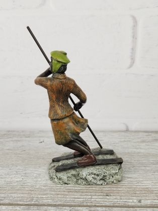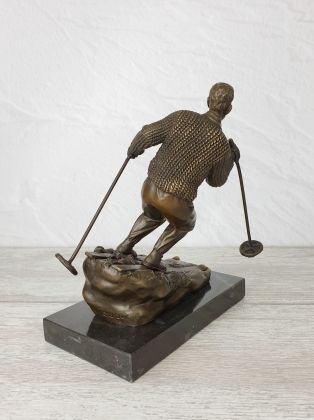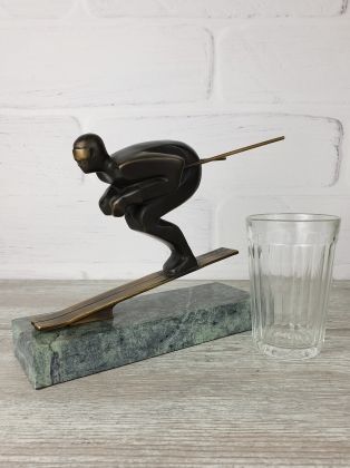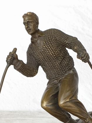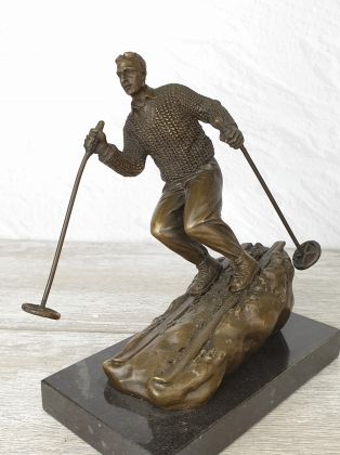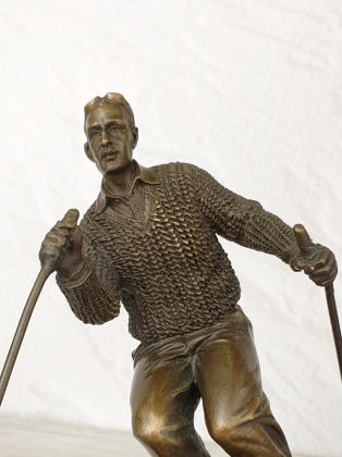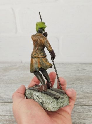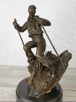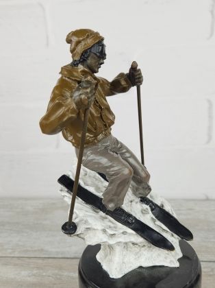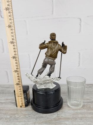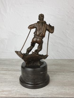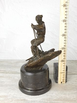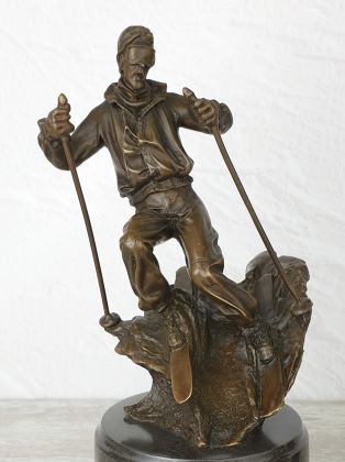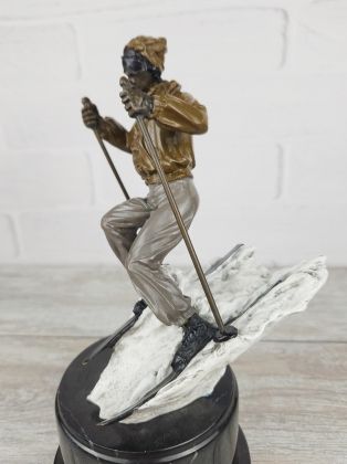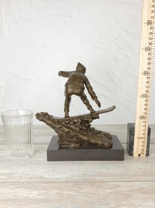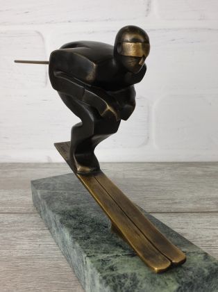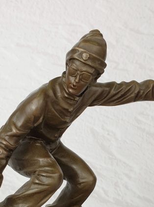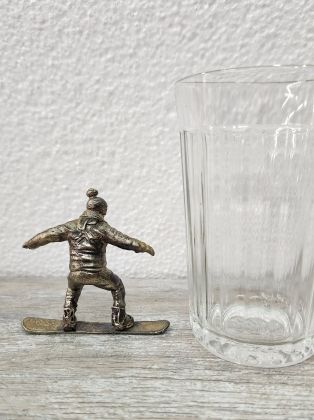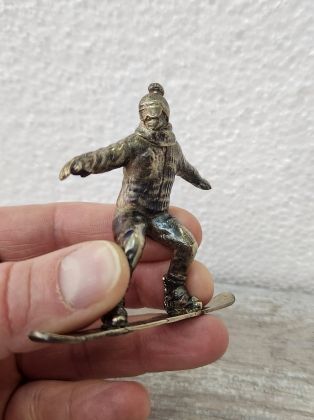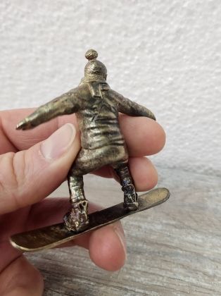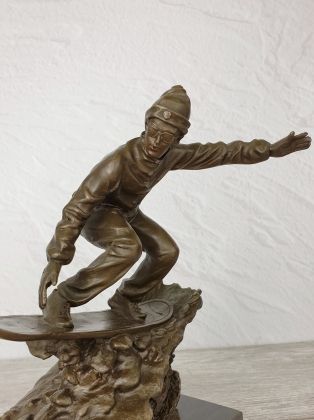 Качественная работа европейского скульптора, изображающая сноубордиста. Автор умело передаёт динамику момента прохождения спуска, поза сноубордиста естественна, реалистична. Обращает на себя внимание предельное внимание к каждому сантиметру работы, в мельчайших подробностях переданы детали одежды и обмундирования спортсмена.